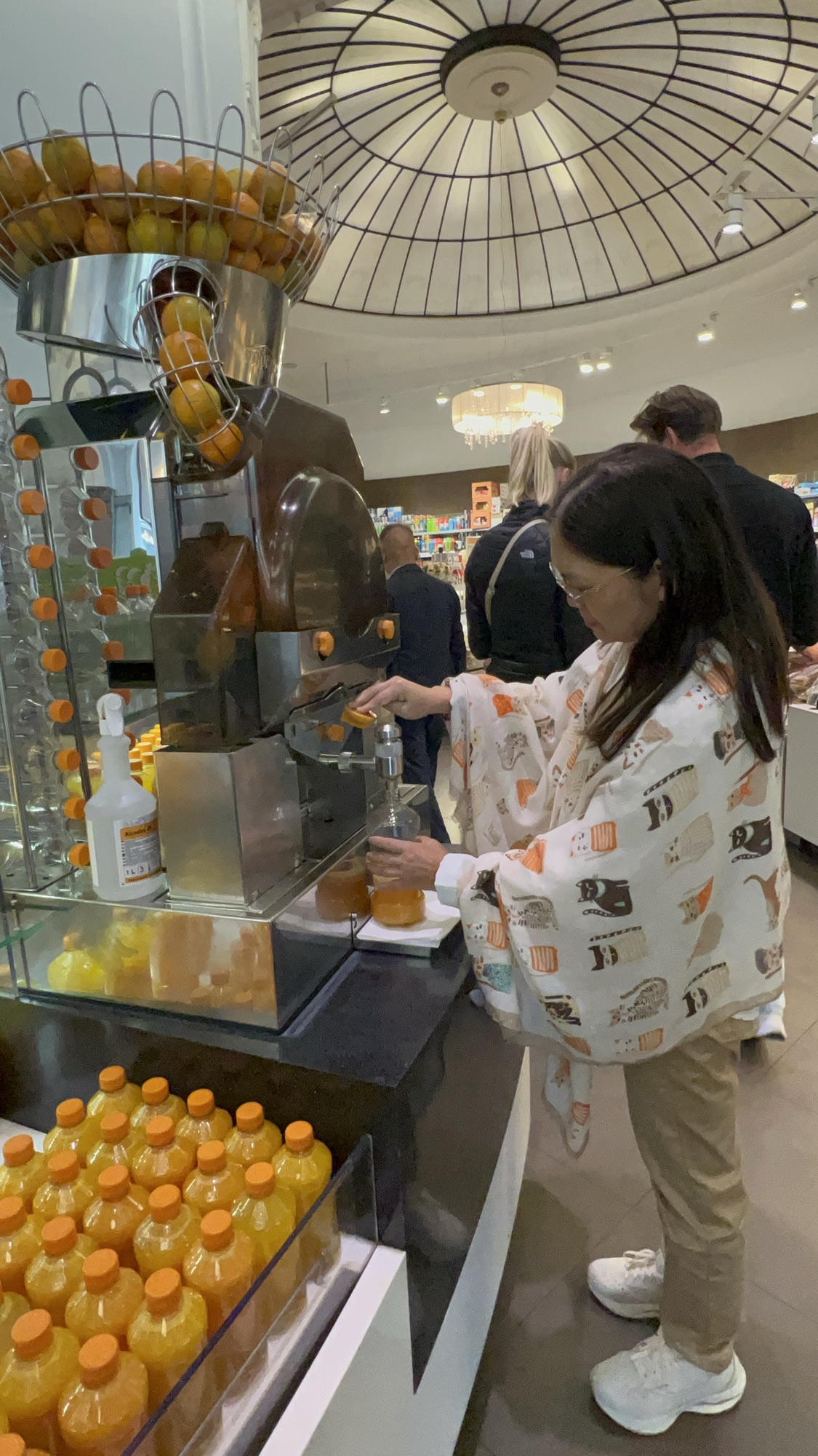 大街旁看到間BILLA超市,正是我們幾年前常來的那家貴婦BILLA,裡面有貴桑桑的熟食區和現榨柳丁汁機,當然要馬上來個一公升(7歐),不是很便宜但是很好喝。在烘焙區挑了些可以當早餐的特價麵包,還買了罐綠綠的藥酒,感覺一定難喝但還是想買。結帳時還聽到後面傳來不少台灣人討論伴手禮的聲音。