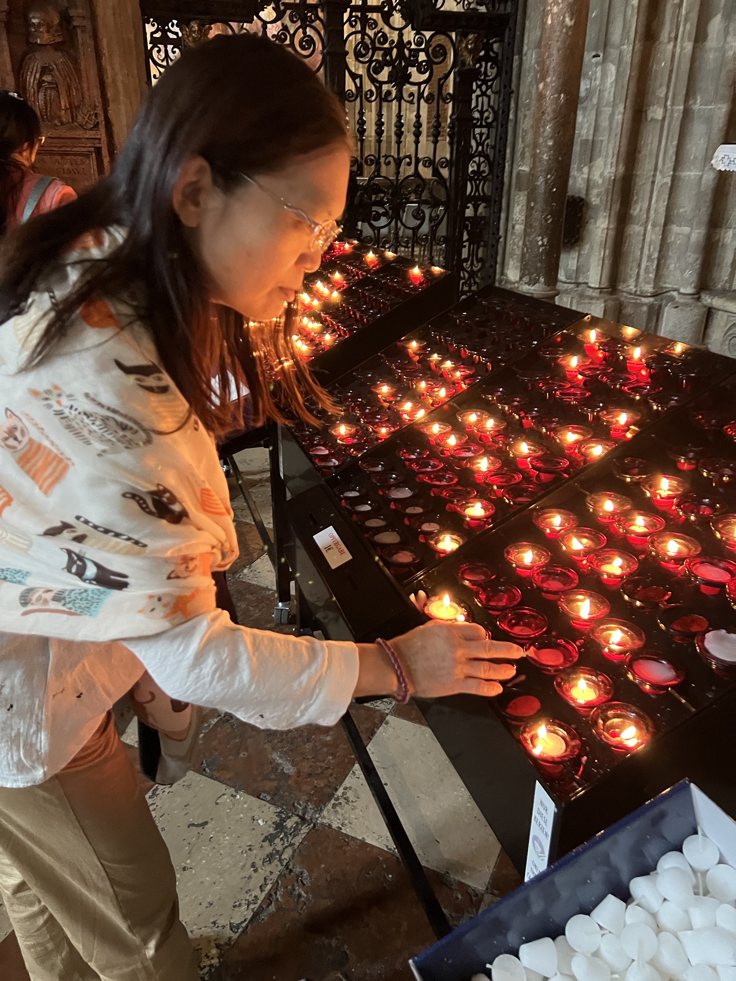 走回大教堂前的廣場,真不敢相信茹茹跟小美剛才來的時候完全沒看到大教堂,就這麼大一座在那邊,怎樣也得來張自拍。教堂裡正在做禮拜,民眾可以在後方參觀,還正好是管風琴演奏的時段,就在裡面聽了一會,還讓小美點了個祈福蠟燭。