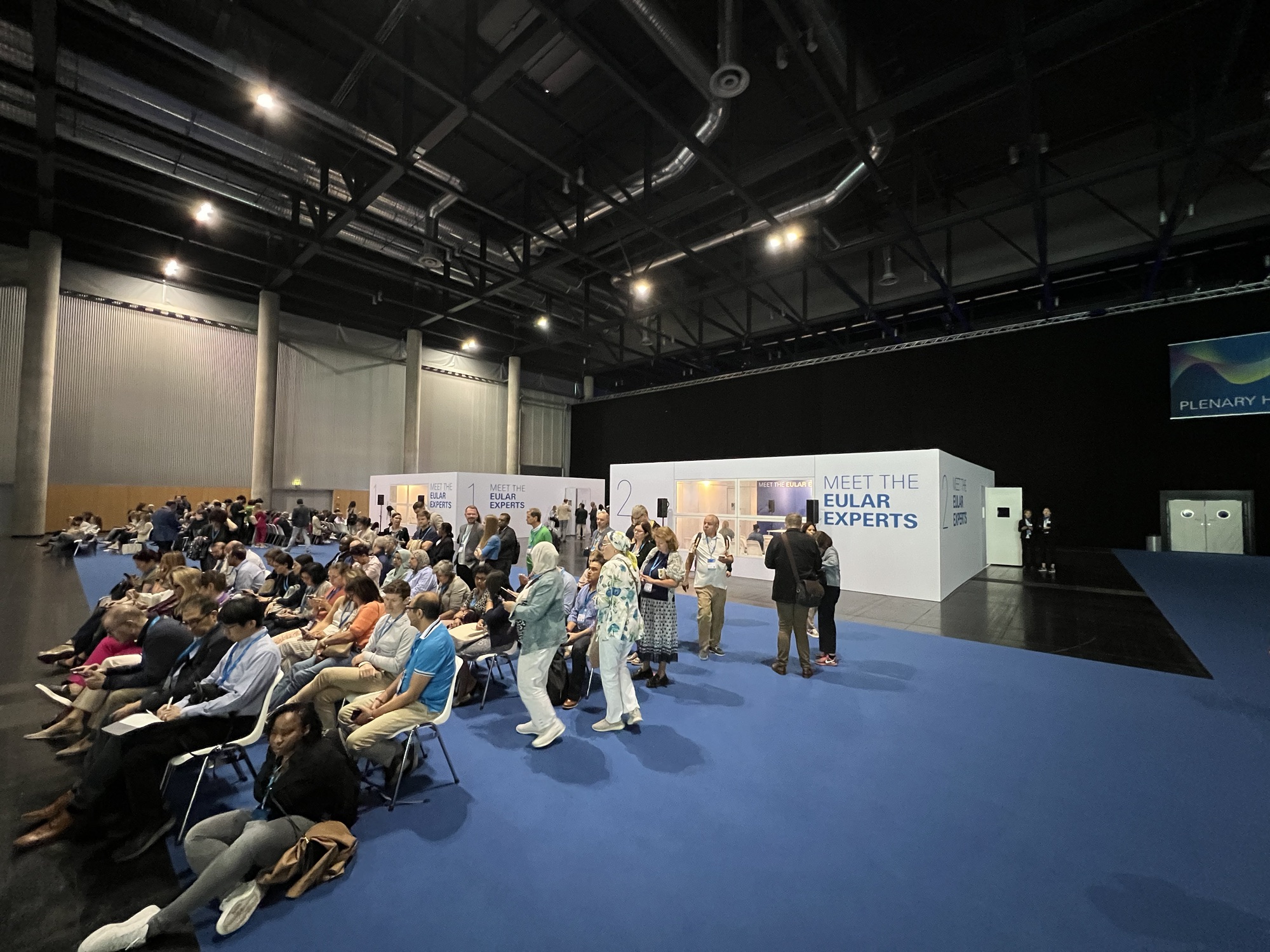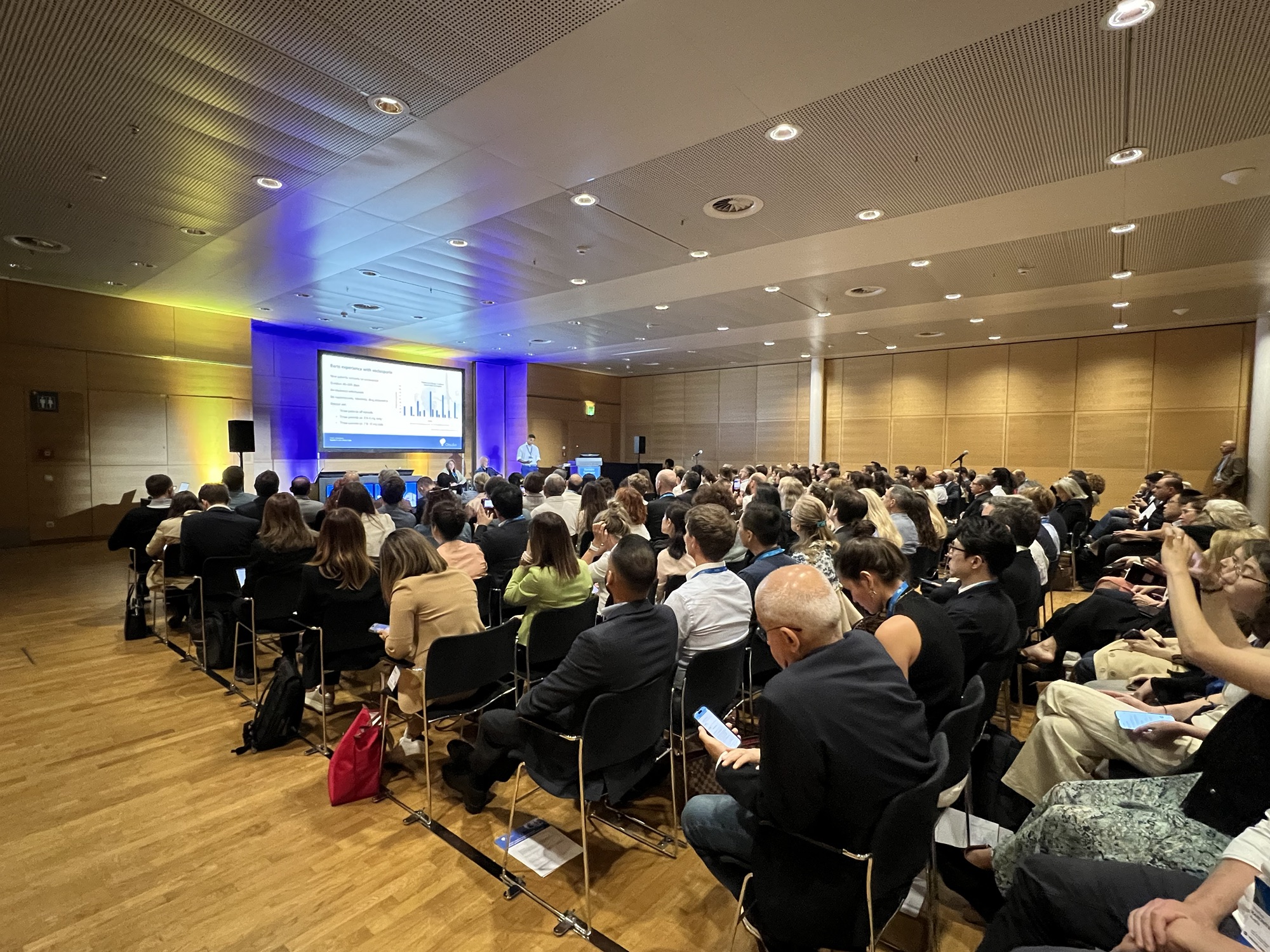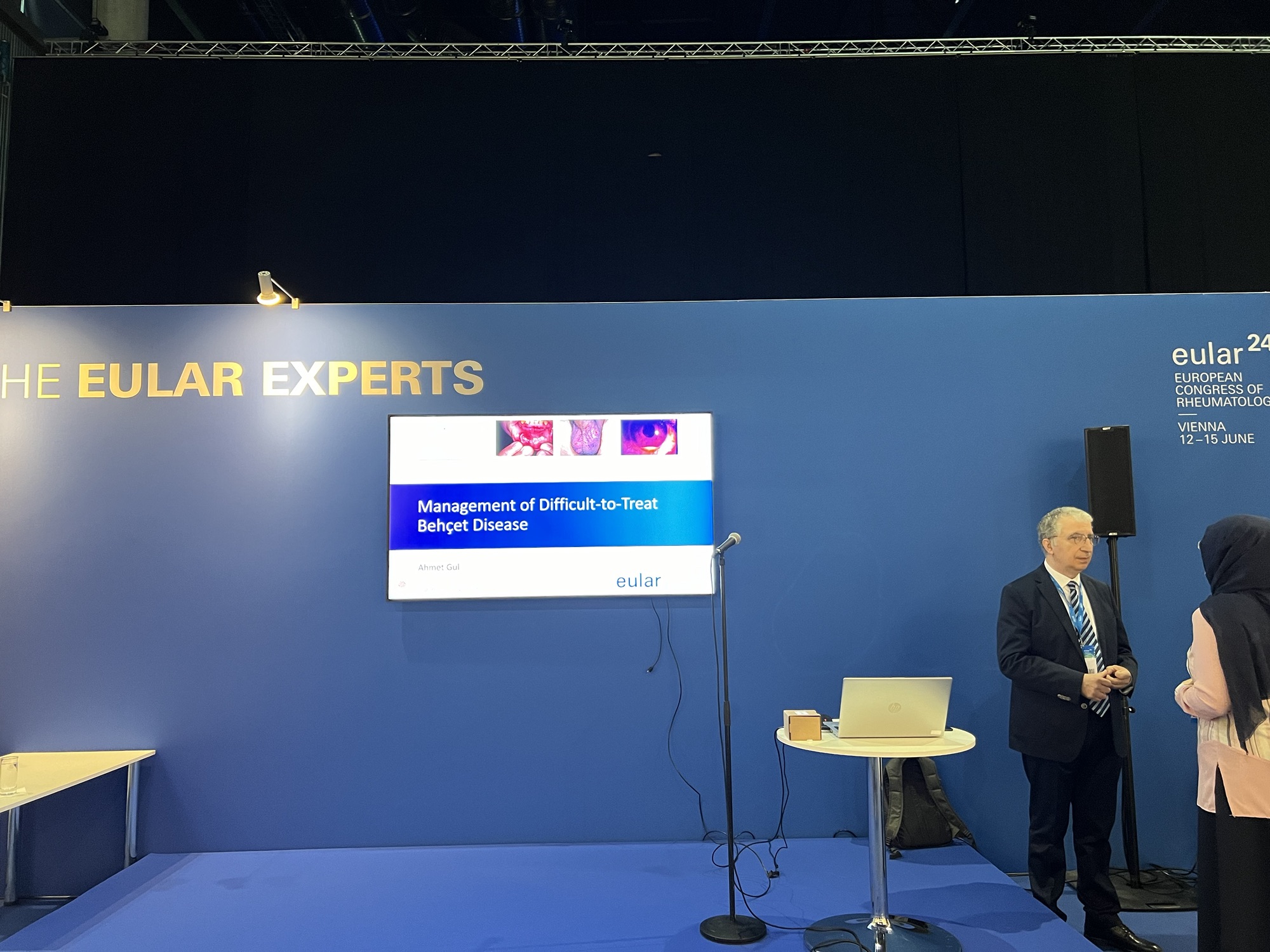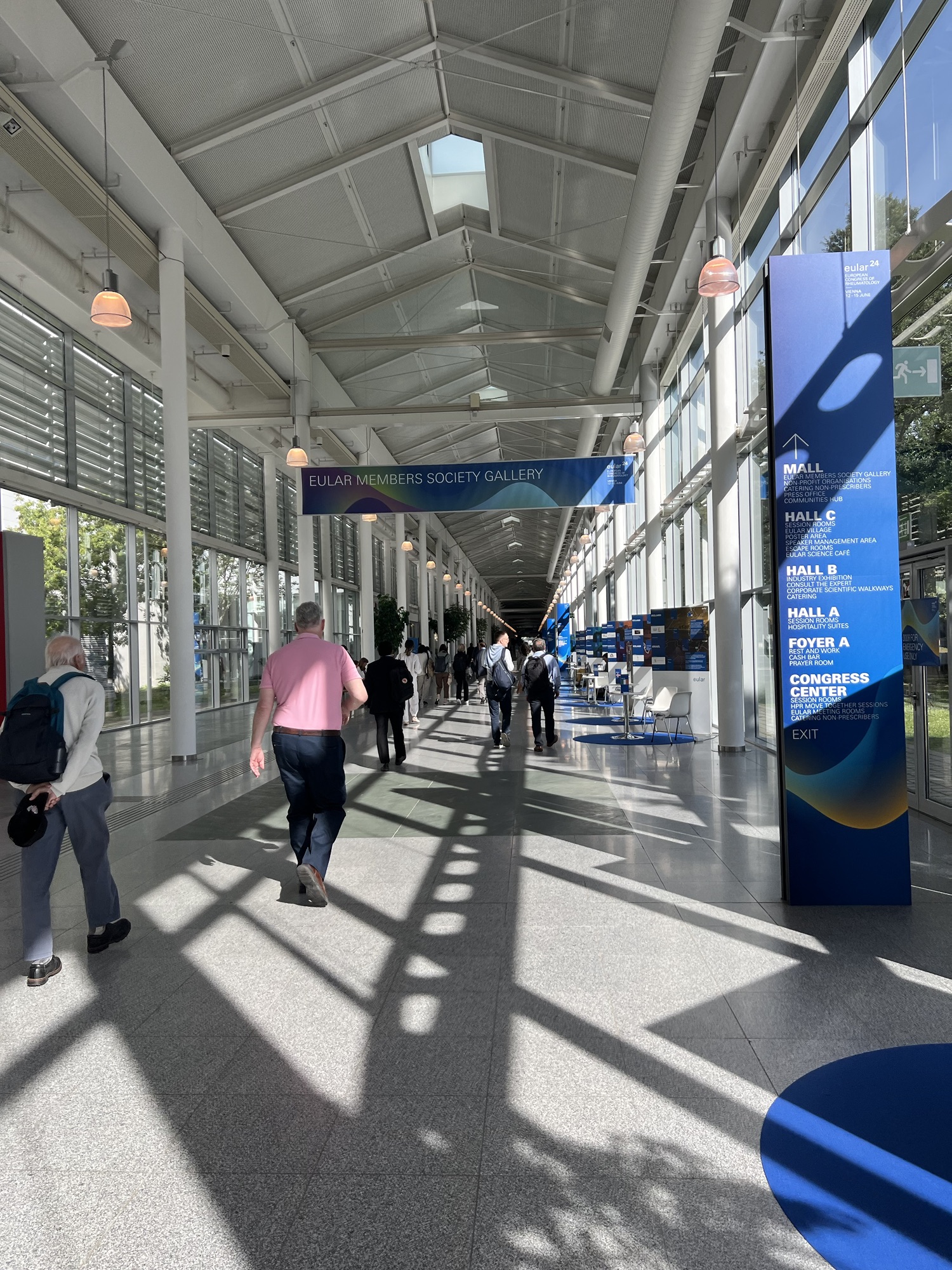 早上的廠商演講同時有六七場,有些有提供咖啡蛋糕,有些什麼都沒有。我看到第一間有咖啡蛋糕的就先停下來拿再說,然後再去我要聽的場子聽講,專業會議蟑螂。之後接著去今早的大師座談,講題是貝西氏症,結果有點失望,大概是這個病也真的沒什麼新招,反正就是那樣。之後又去聽了骨鬆,然後又一次失望,實在沒什麼新梗,乾脆跑去攤位區拿了個鬆餅咖啡吃吃。吃完決定去聽一下關於血管炎的最新論文發表,以前都不太敢去聽這種場,覺得自己的基礎知識不夠紮實,怕會聽這種太新的新知反而走偏掉,但這次聽覺得自己是有底氣一點了。