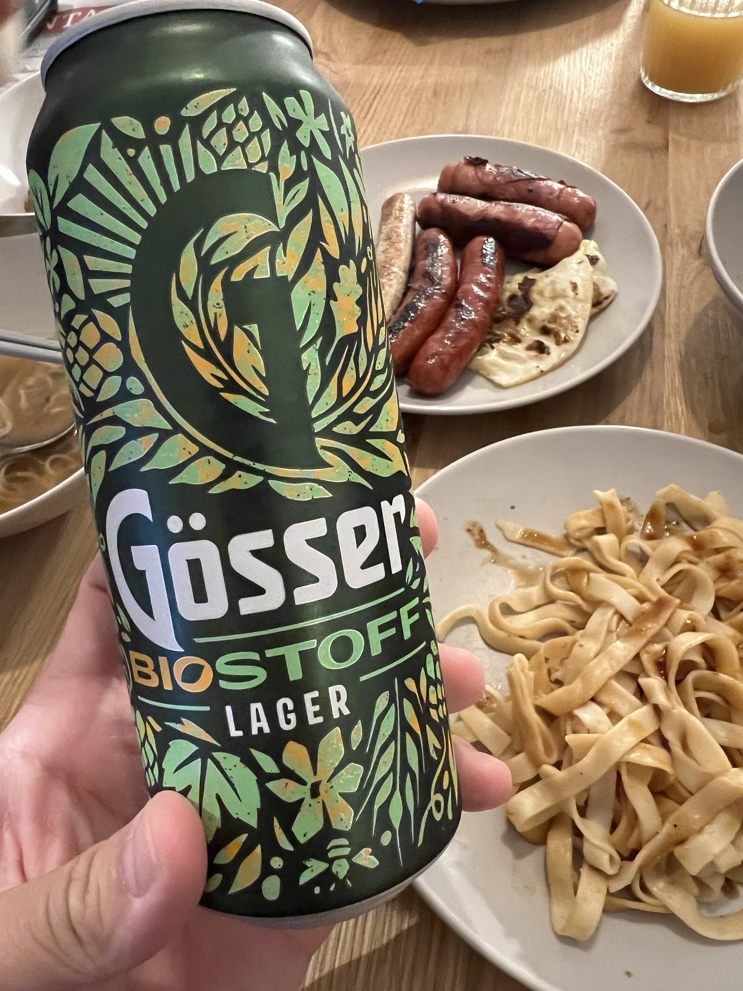 搭地鐵回公寓附近,茹茹去藥局買了褪黑激素(只有藥局有賣高劑量的),然後走了有點遠去BILLA買晚餐,沒想到這間沒有現榨果汁,失策!買了櫛瓜、高麗菜和香腸組合回去配台灣帶來的泡麵,還買了在地的Gösser啤酒來喝,不過我覺得味道有點清淡,沒什麼特色。回公寓用烤箱烤櫛瓜結果烤到整個乾掉還黏底,高麗菜有夠硬完全煮不軟,有點慘烈。倒是久久吃個泡麵真的很爽。