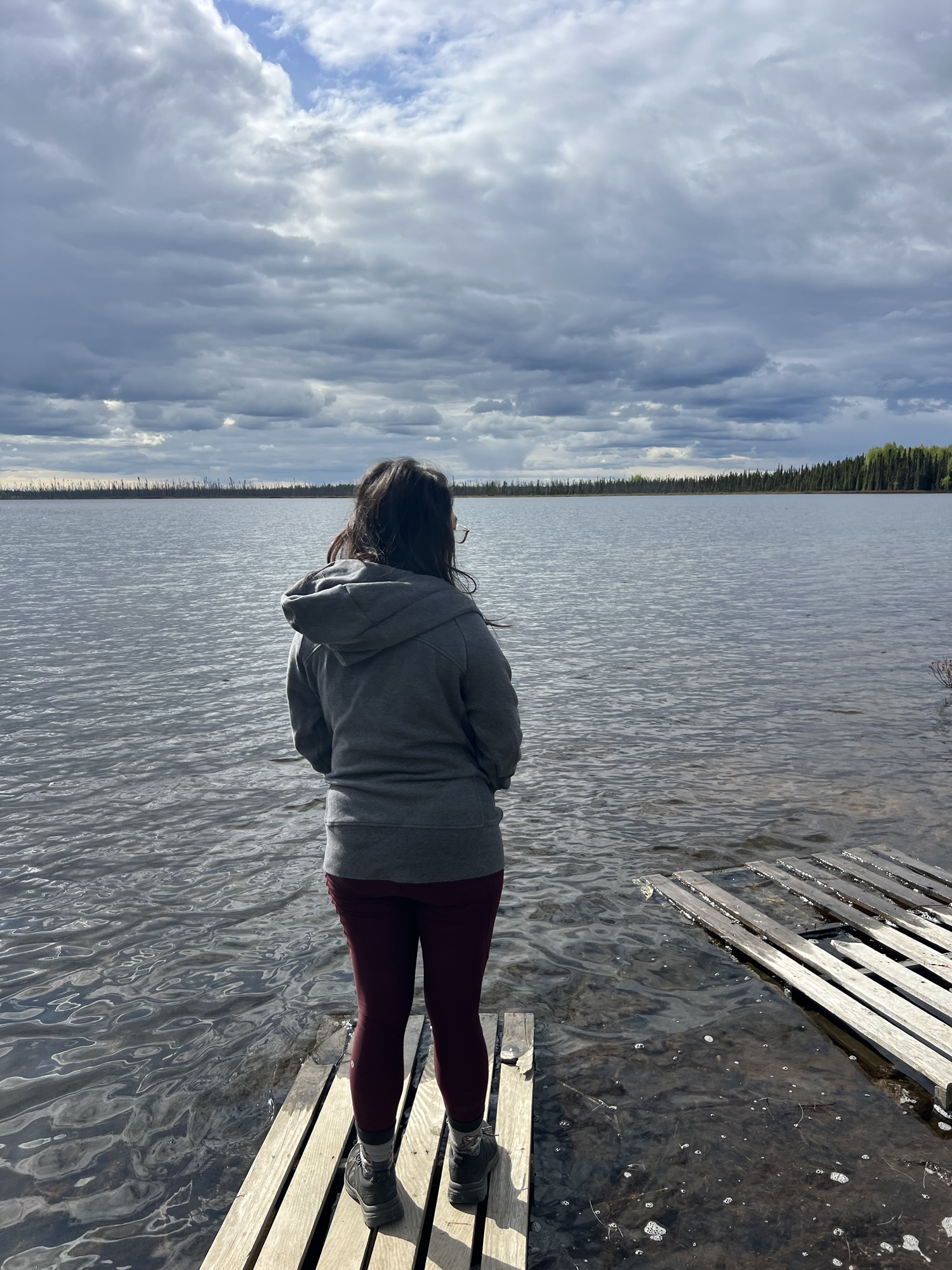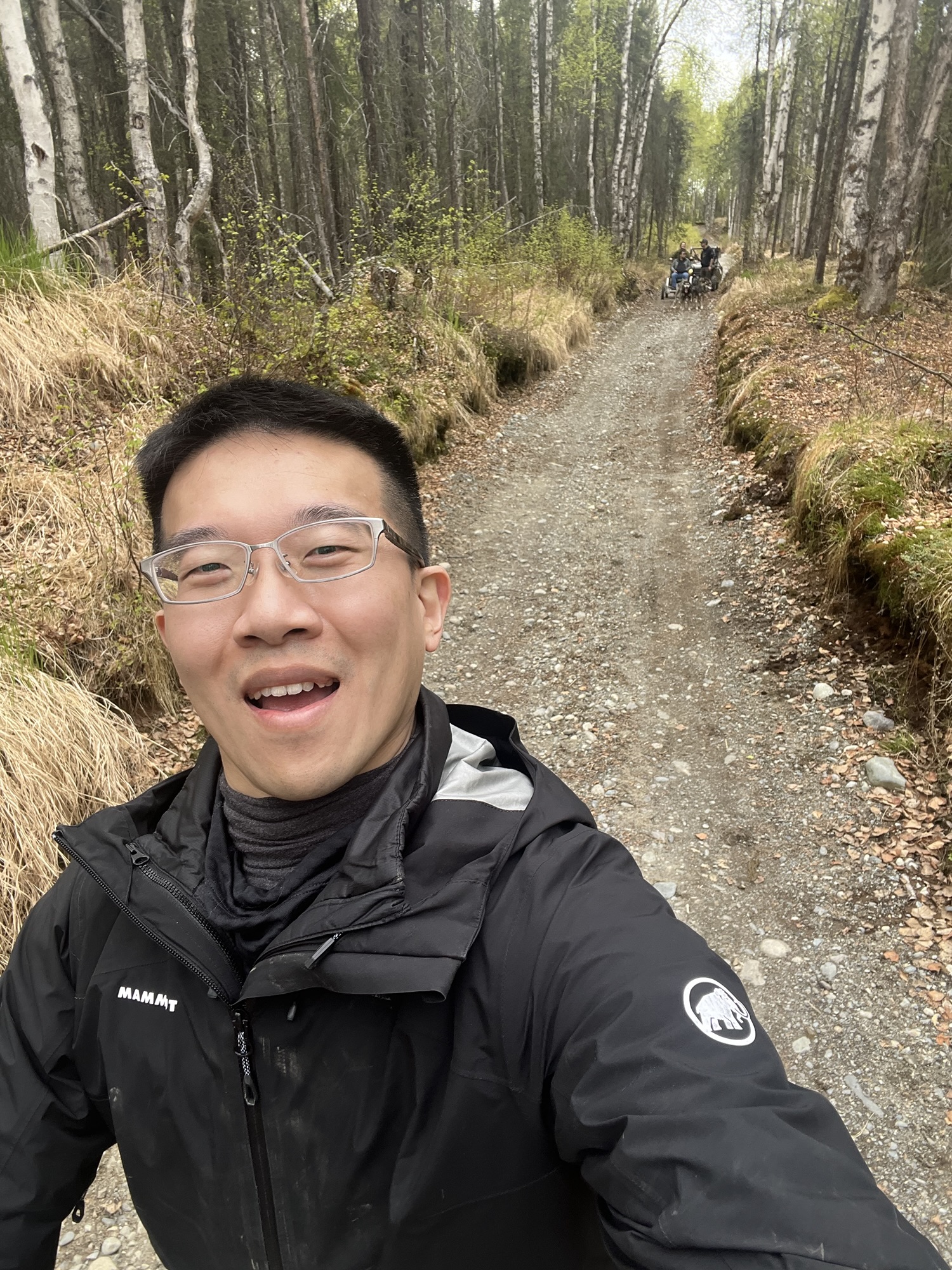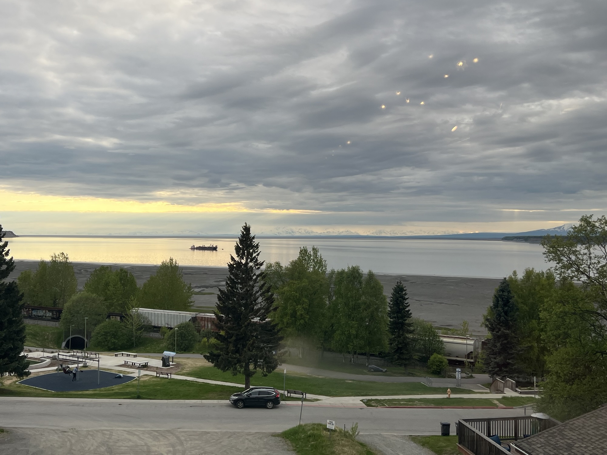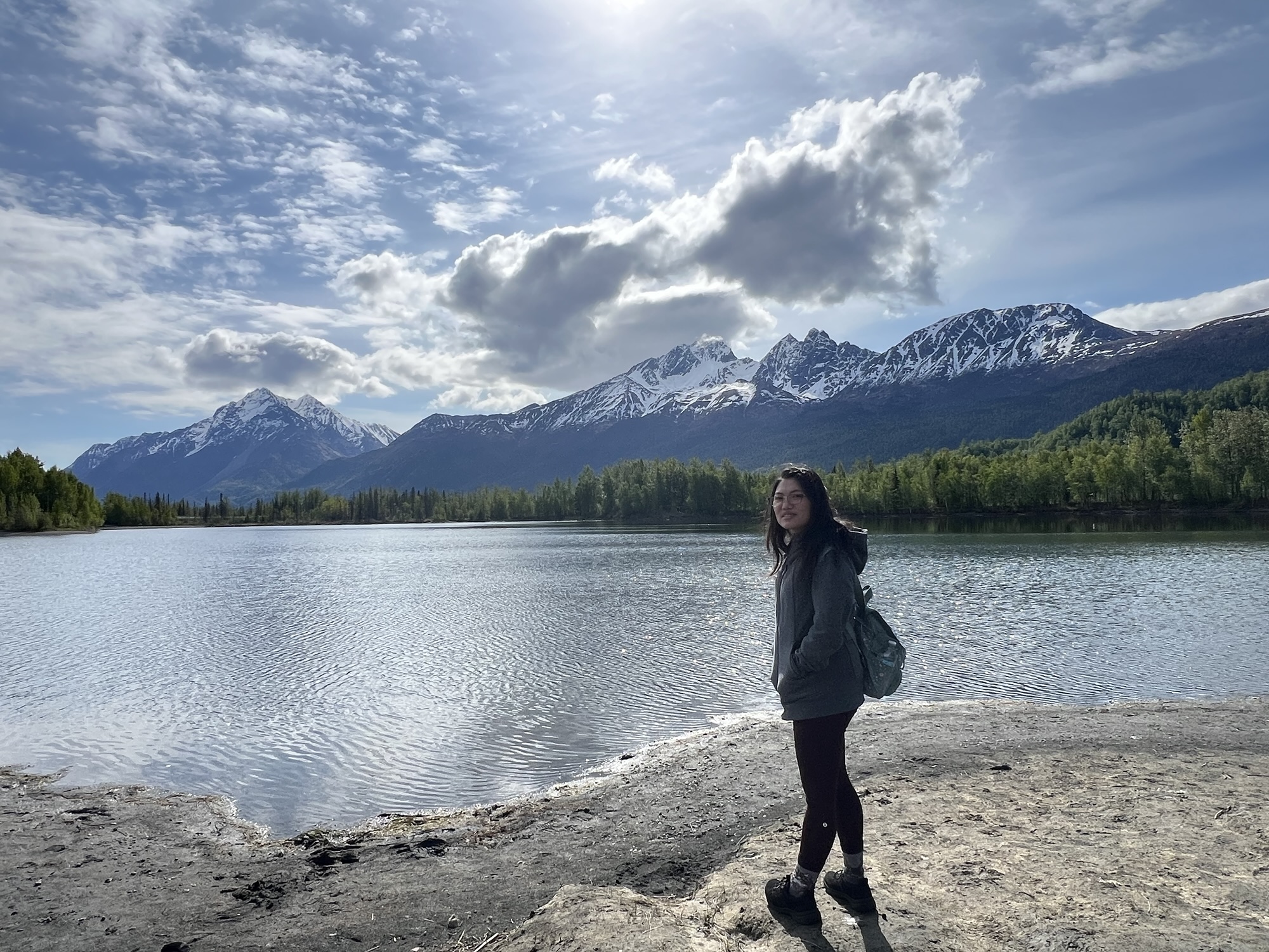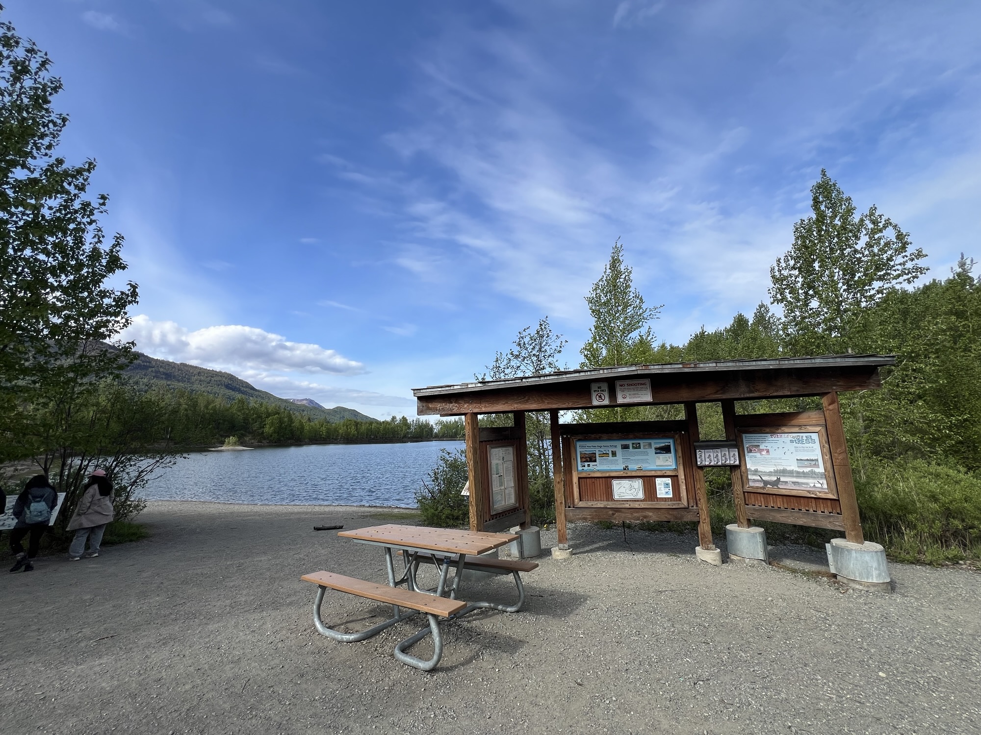 回程路上後座的兩位女士好像睡死了,不知道是不是剛剛的行程太刺激了。中途在一個小湖畔稍停一會兒,阿拉斯加好像到處都是這種美麗的小湖。接近安克拉治時出現好多大卡車令我緊張,還好安全抵達也沒有被警察攔下。