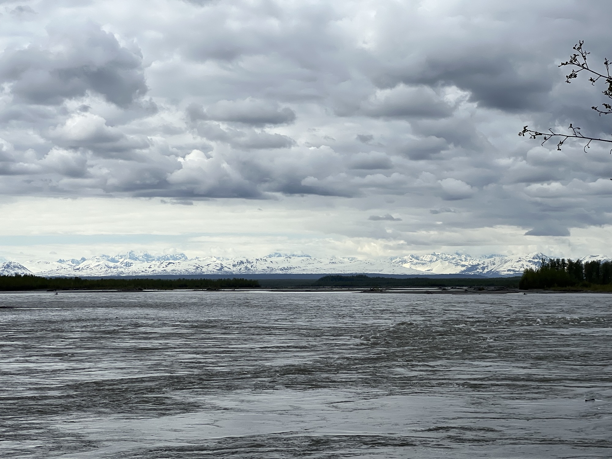 今天終於比較回暖,一早起來就是個藍天白雲的天氣。我們報名的狗拉雪橇位於安克拉治北邊的Talkeetna,是過去的淘金小鎮,現在則是很多小飛機旅遊的基地,從這裡往北看就能遠眺北美最高峰Denali,高度六千多公尺!從安克拉治出發要開兩個半小時的車,所以也是得早起吃飯,九點半接茹茹的前老闆上車,就開始今天一路向北的行程了。