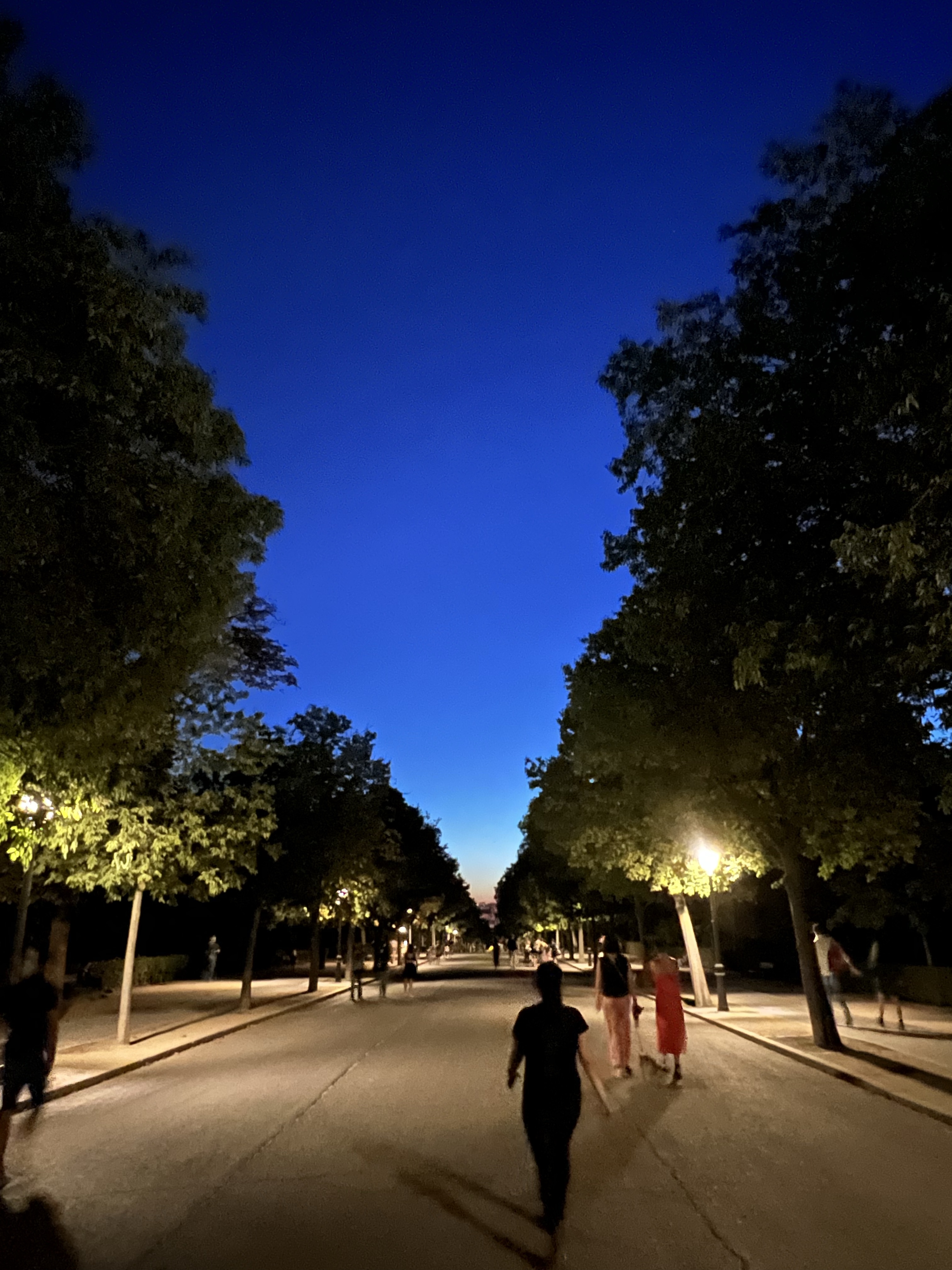 走到公園時天色已經轉為藍灰色,樹林間的小路也變得很陰暗,我跟著茹茹腳步在林間穿梭,深怕一個閃神就跟丟了;倒是很多當地人儘管天黑了還是躺在草地上聊天。公園的小水池裡有很多鴨子,有人帶了小狗在水裡游泳追鴨子,但鴨子看起來一點都不慌張;公園中央有個大水池,池邊的氣溫明顯較低,但對岸的紀念碑旁還是坐滿了人。上上下下跑了一陣,覺得膝蓋有點不行,茹茹說不然我們來衝刺一小段就收工,我們就在人來人往的大路上一邊閃避一邊衝刺跑了一百公尺,路人表示莫名其妙。