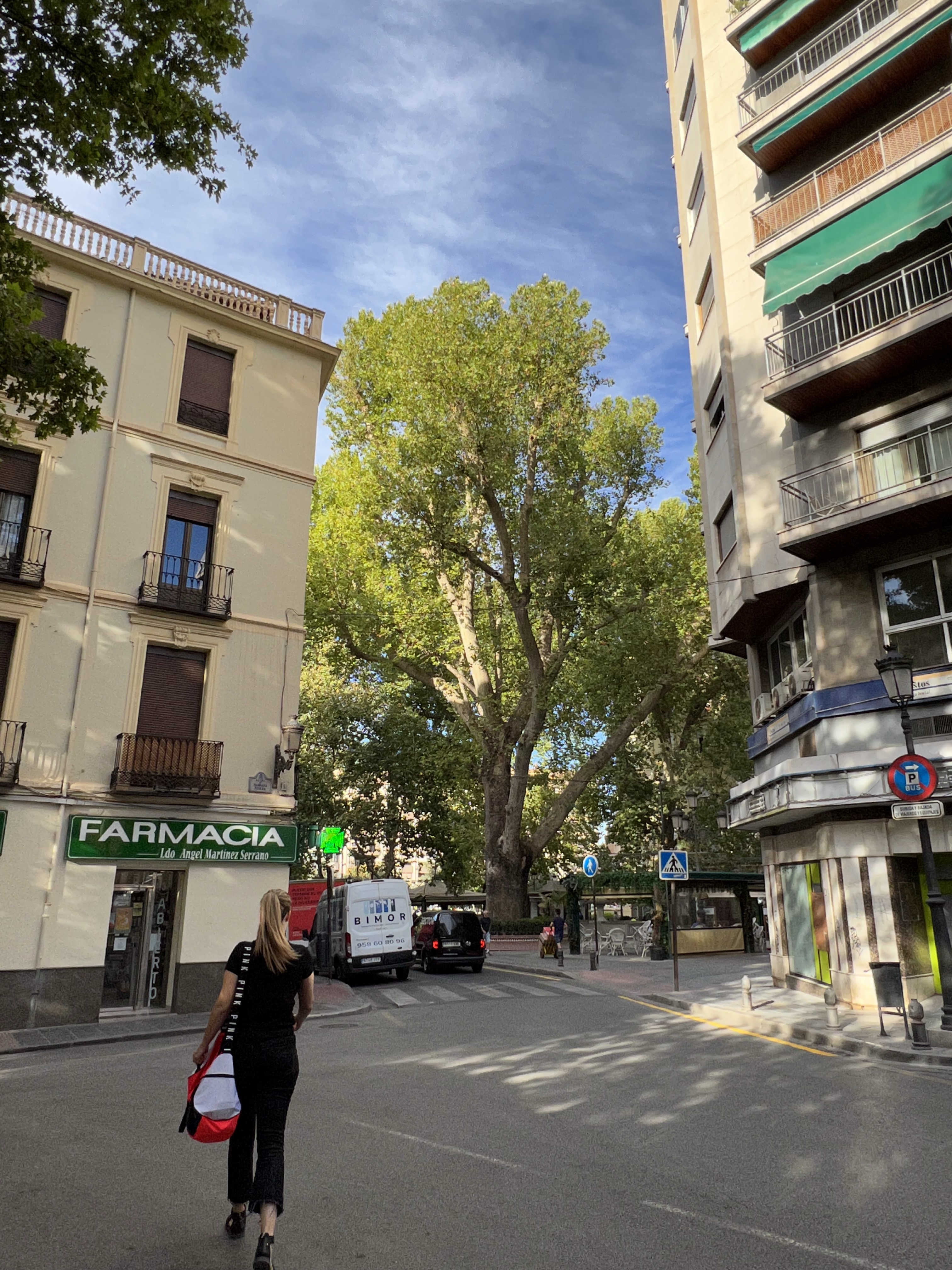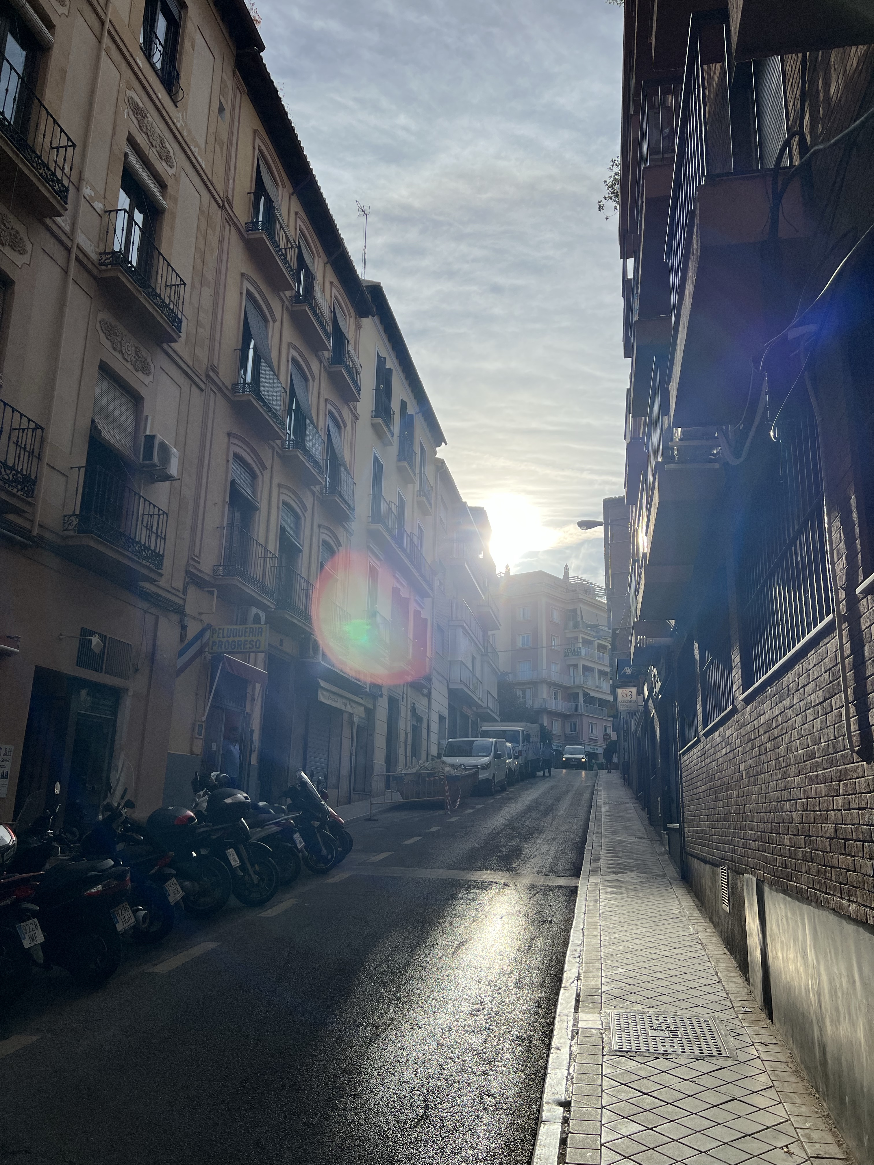 旅館過個馬路就是往阿爾罕布拉宮的公車站牌,因為我們預約進入主殿的時間是下午四點半,就懶懶散散中午起床,先在附近找餐廳吃飯。公車站旁的斜坡上有兩家餐廳,看準其中一間,正要被服務生小哥領進去時,對面餐廳的服務生小妹還偷偷跟茹茹招手眨眼,兩家店看來是打對台很久了哪。