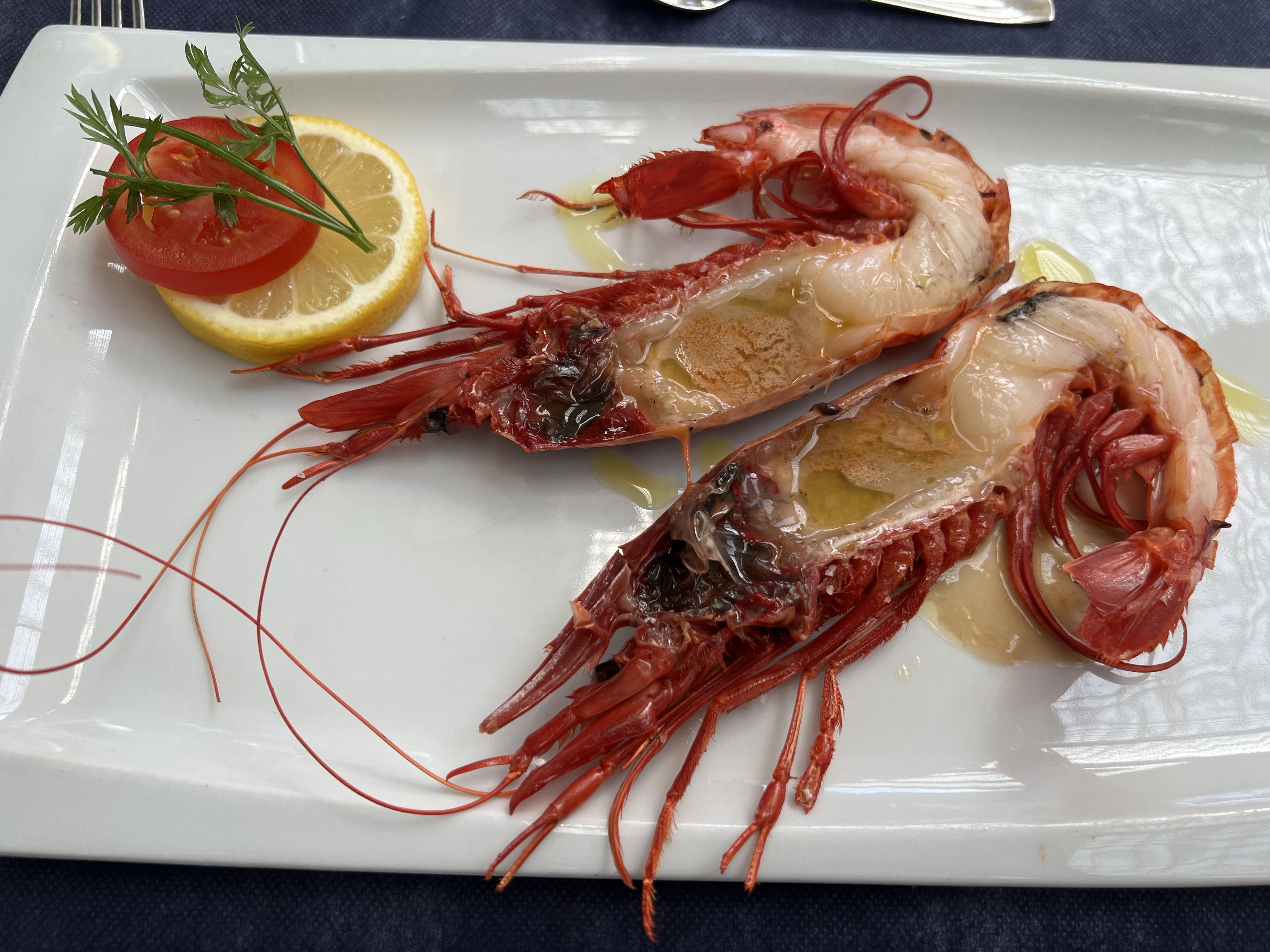 小隻的蝦子其實一點也不小,而且超級肥,連蝦腳都能一根一根擠出肉來,蝦頭也極鮮美,不愧是地方特產!大隻的也是烤得彈牙多汁,我們一點汁都不浪費,一定是要拿麵包吸得乾乾淨淨才甘願。最後結帳果然是很猛爆的價錢,小隻的一隻6.5歐,大隻的居然要34歐!下次還是吃爆小隻的就好。