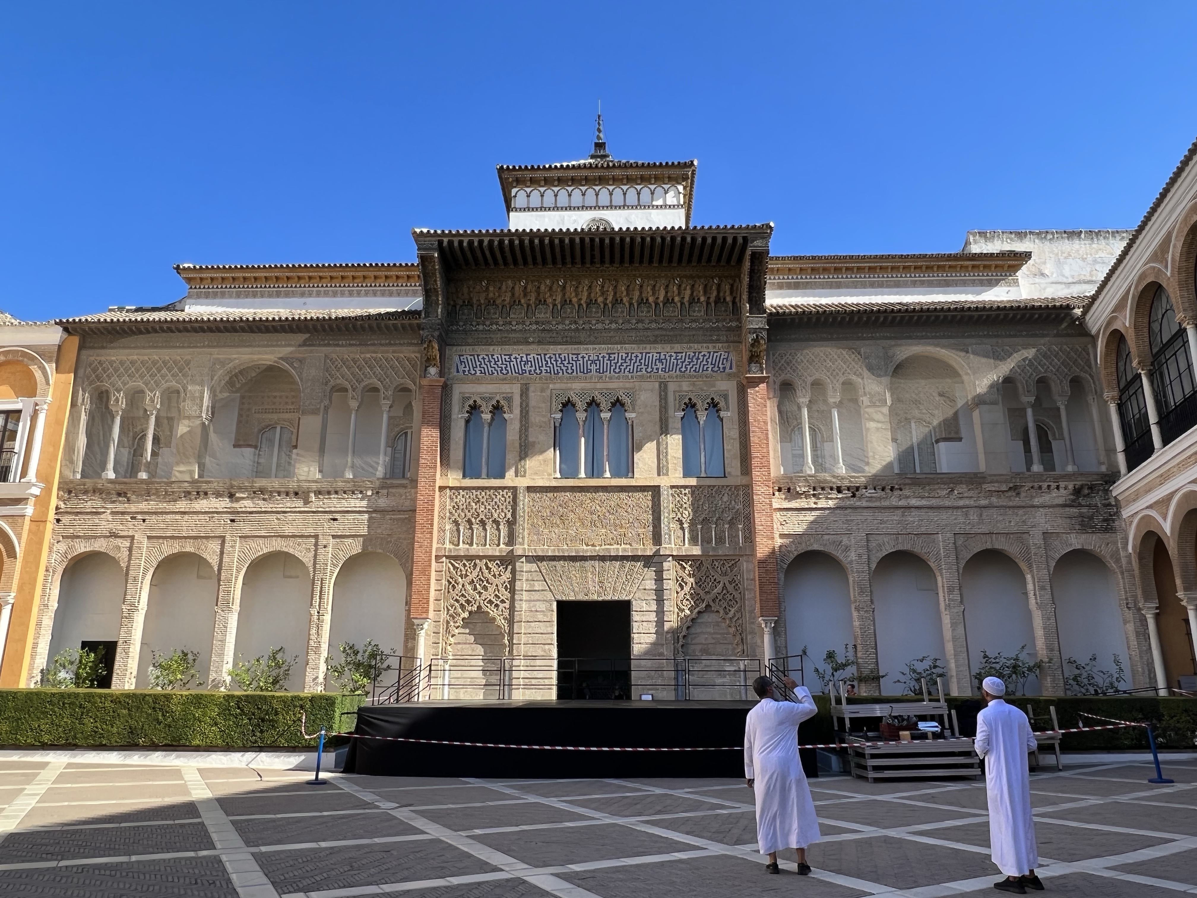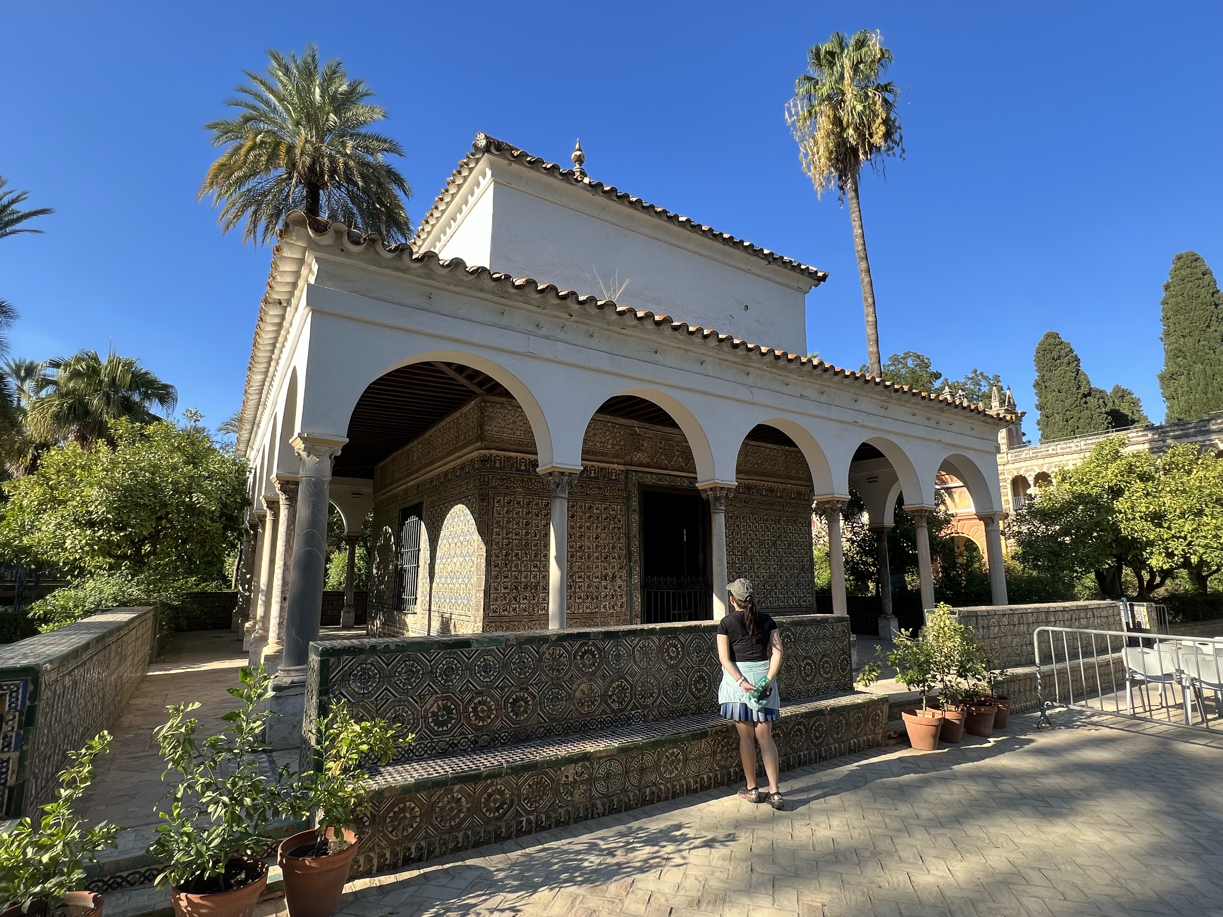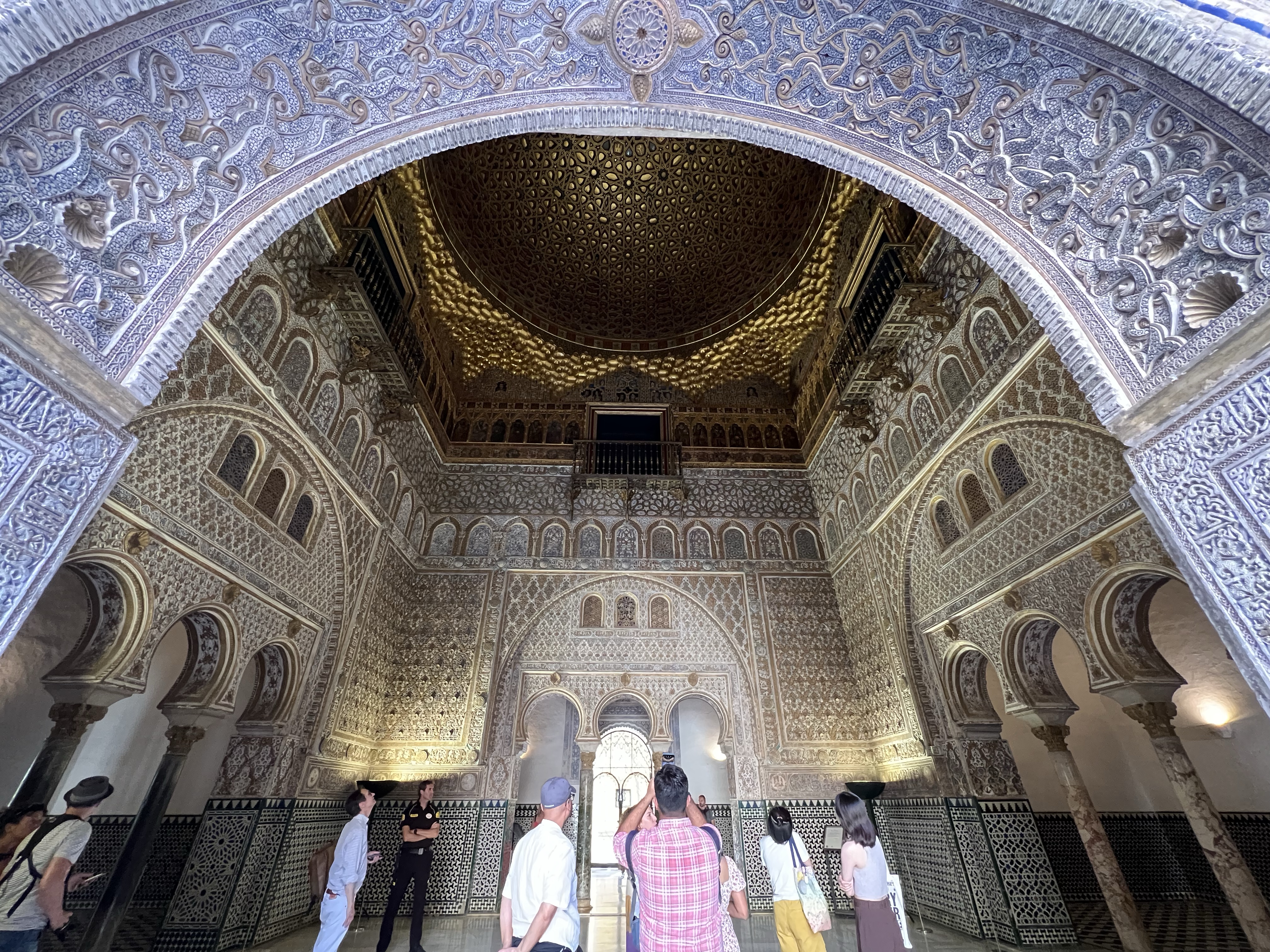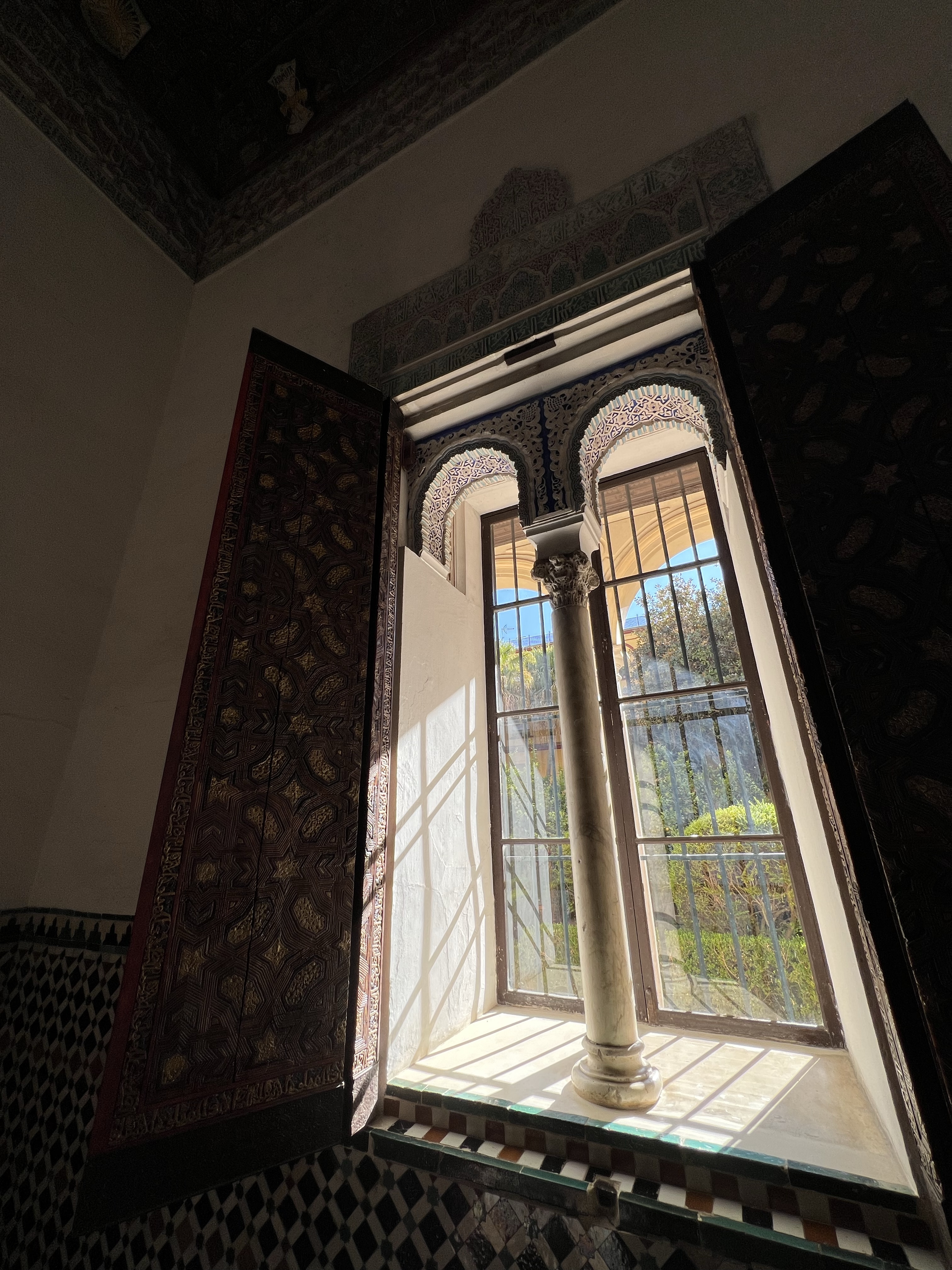 塞維亞皇宮就像是阿爾罕布拉宮的複製版,每座門每扇窗每個天花板的裝飾都有阿爾罕布拉宮的影子,也有非常類似的中庭水池。但真正精彩的在塞維亞皇宮加上了當年輝煌時期的彩繪,不單只是白白褐褐的石膏和木板,所以儘管看過阿爾罕布拉宮,塞維亞皇宮依然非常值得參觀。