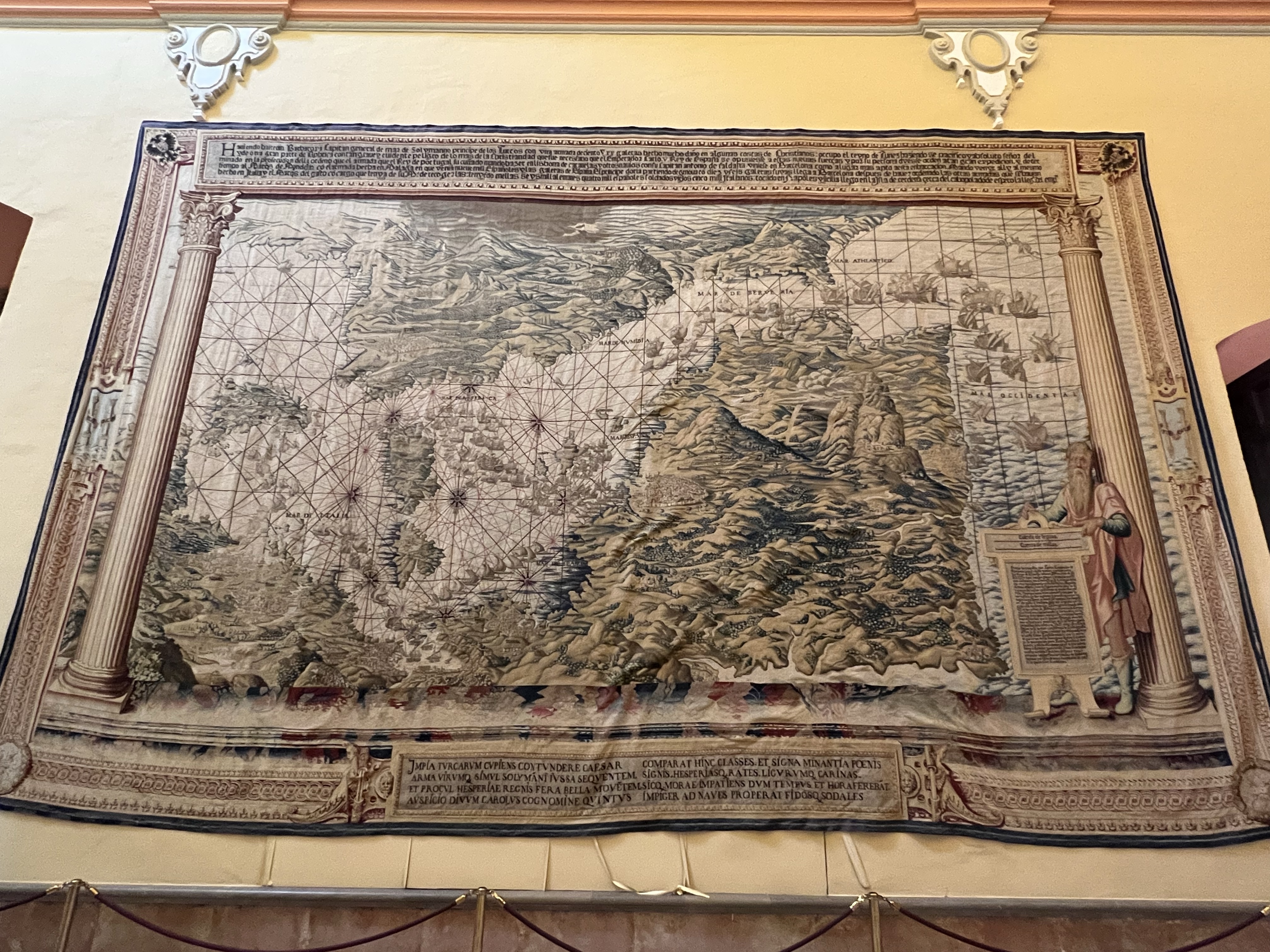 離開皇宮前,順道參觀了一間展示著超大地毯的廳堂,有的是地圖、有的是當時的景緻,就連海水的波浪都是一針一針勾出來的,細緻到令人驚嘆,跟滿地走的孔雀相比,這就是有錢人雜雜實實的炫耀了。