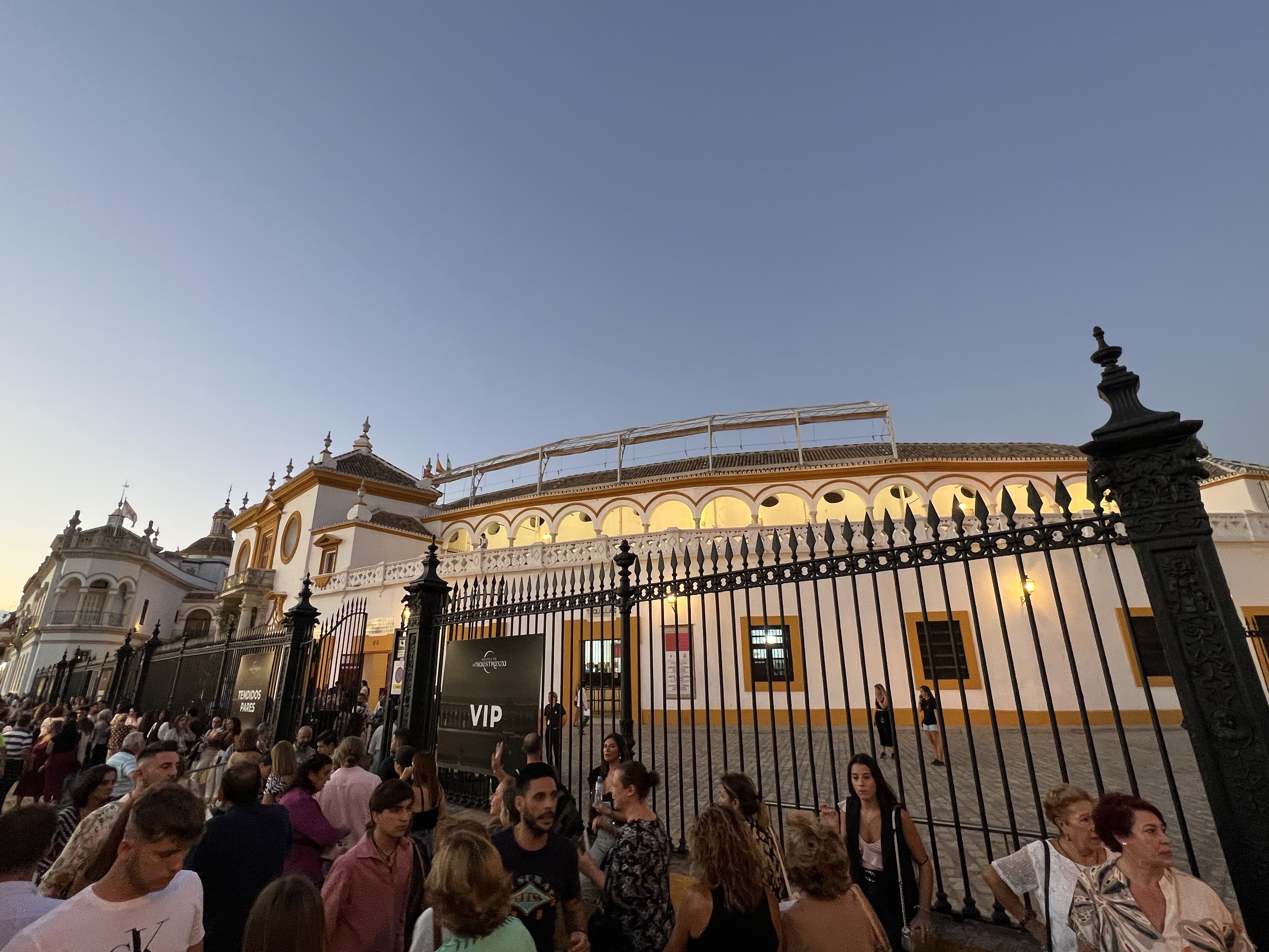 吃完飯後想去西班牙廣場看看,就只是一定想看一眼西班牙廣場,莫名的觀光客心態。走到河岸邊想說騎個電動滑板車過去,正好遇到今天晚上有鬥牛比賽,鬥牛場外很多人等著進場,還有在門口賣零食的小販,人聲鼎沸。