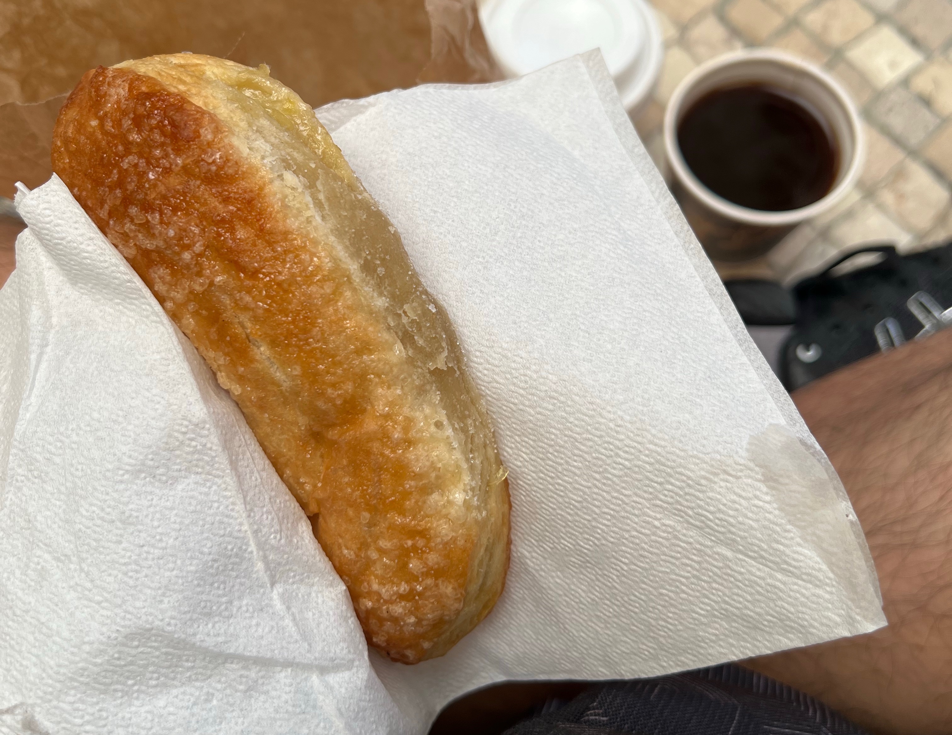 住宿的旅館儘管老舊,洗澡和睡覺這兩件最重要的事倒是表現良好,我睡了很好的一覺。起床後就走去火車站接待會要來會合的老婆大人。早餐就在車站裡的咖啡店隨便買了一個蘋果派跟可頌配美式咖啡,沒想到美式咖啡有夠淡幾乎沒味道,義大利人是不是故意的。