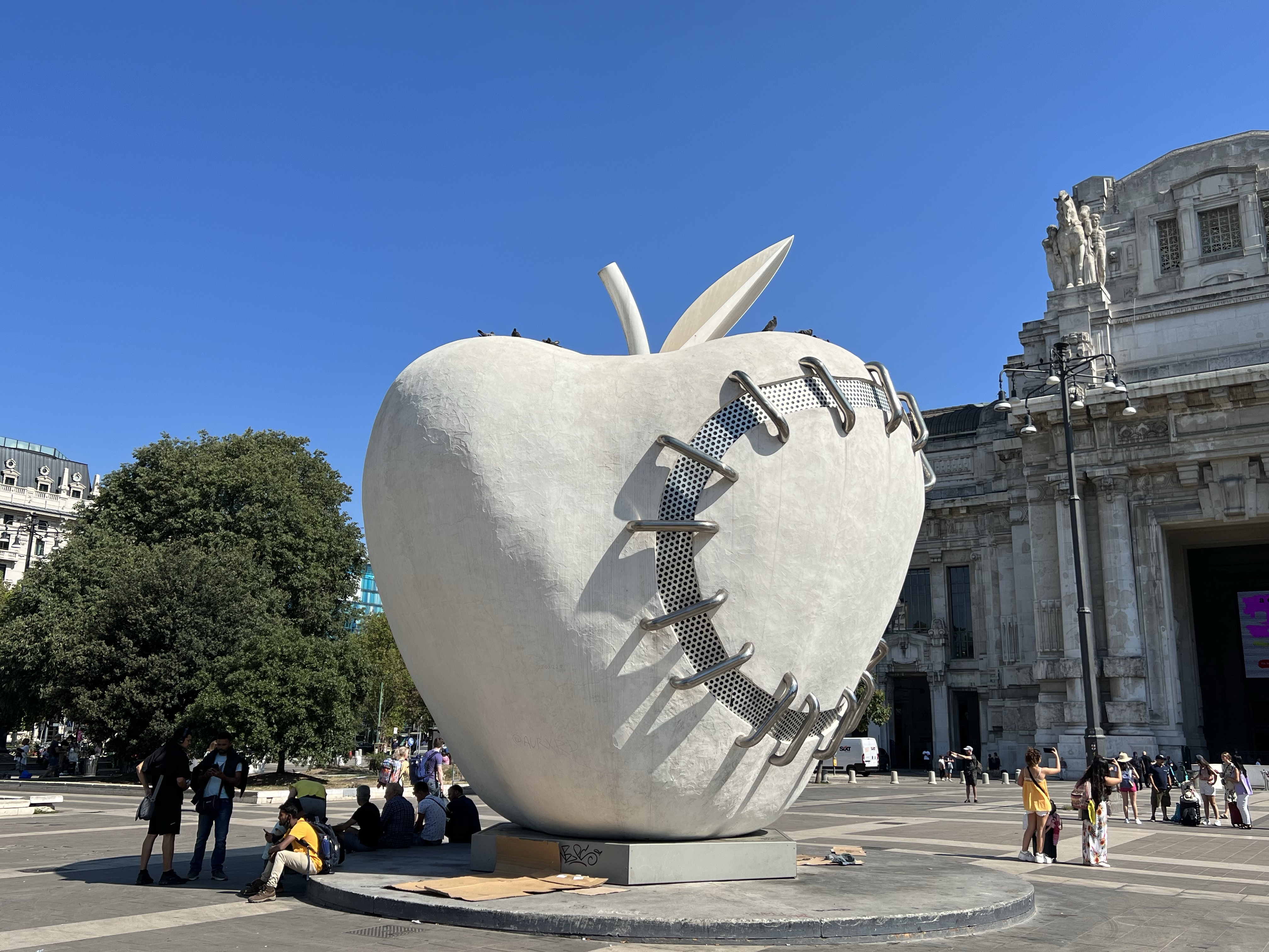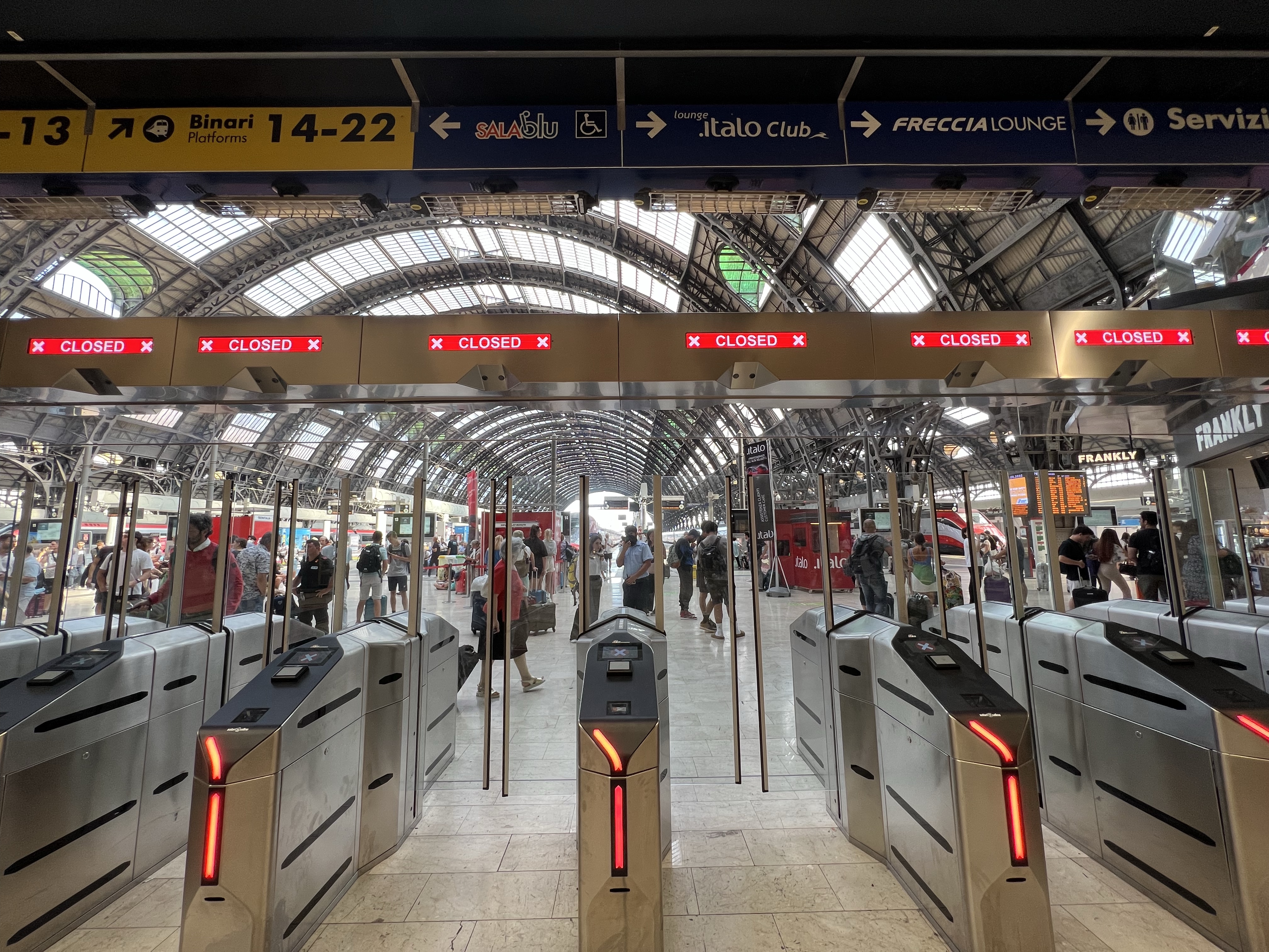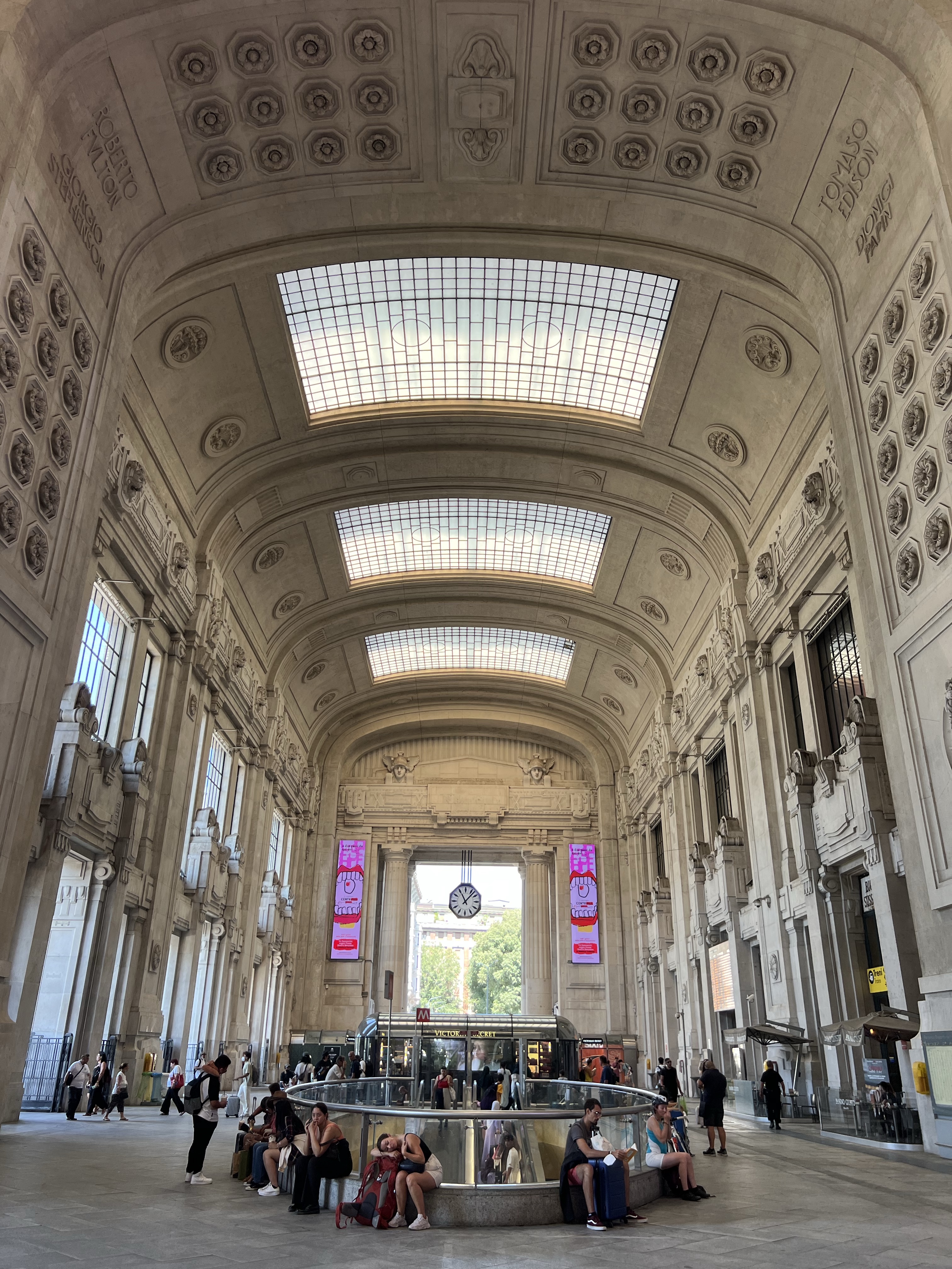 米蘭車站現在要走到月台區需要刷票才能進去,我只能在月台閘門外等人,隨便找個地方坐下就把早餐吃完了。十一點半多茹茹的車到站了,花了一點時間找到她,就先去旅館把東西放一放。茹茹真的是很會看路上的指標,第一次來走得熟門熟路,我昨天覺得很怪的旅館門也是毫不猶豫的進去。